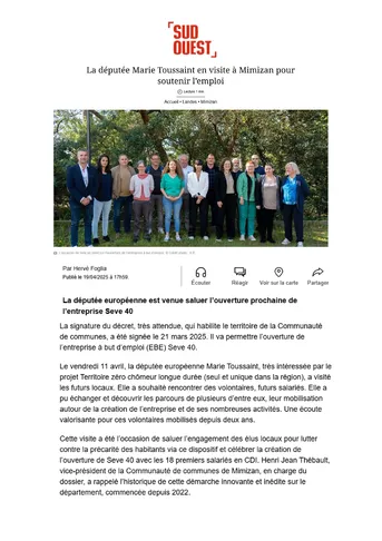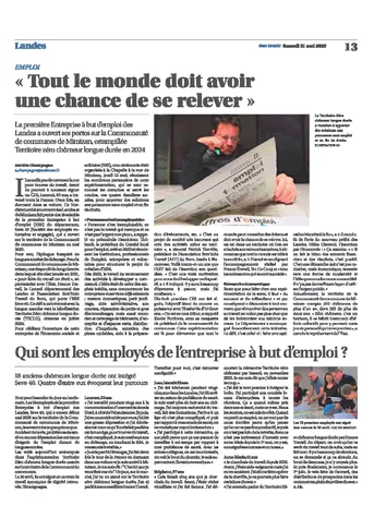 Entreprise ayant pour fonction de créer des emplois manquants sur le territoire et adaptés aux personnes privées durablement d'emploi.