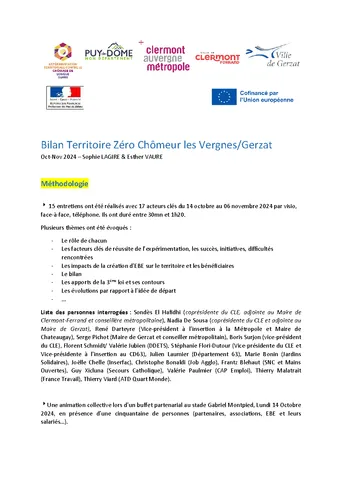 Le territoire de Gerzat-Les-Vergnes a été habilité le 03/06/2022. Au 1er janvier 2025, le CLE compte trois entreprises à but d'emploi sur son territoire opérant dans la transition écologique, la cohésion sociale ou encore le développement du tissu économique local.